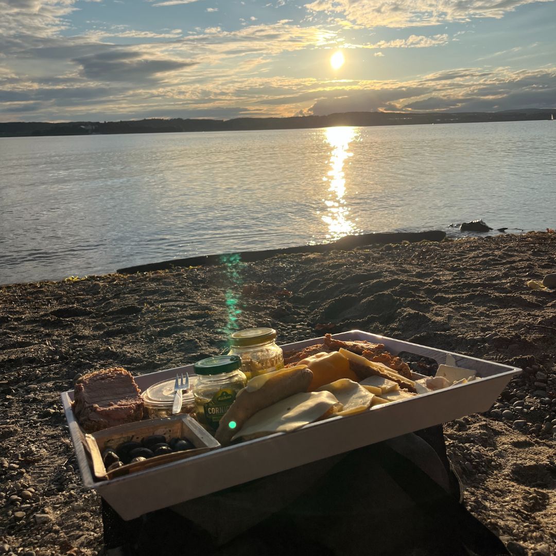 Ein ungeplantes Picknick zum Sonnenuntergang am Bodensee: Leckeres Essen, gute Musik, Tanzen am Strand, während die Sonne bilderbuchmäßig untergeht – ein spontaner Glücksmoment, in dem ich mich lebendig und verbunden gefühlt habe.