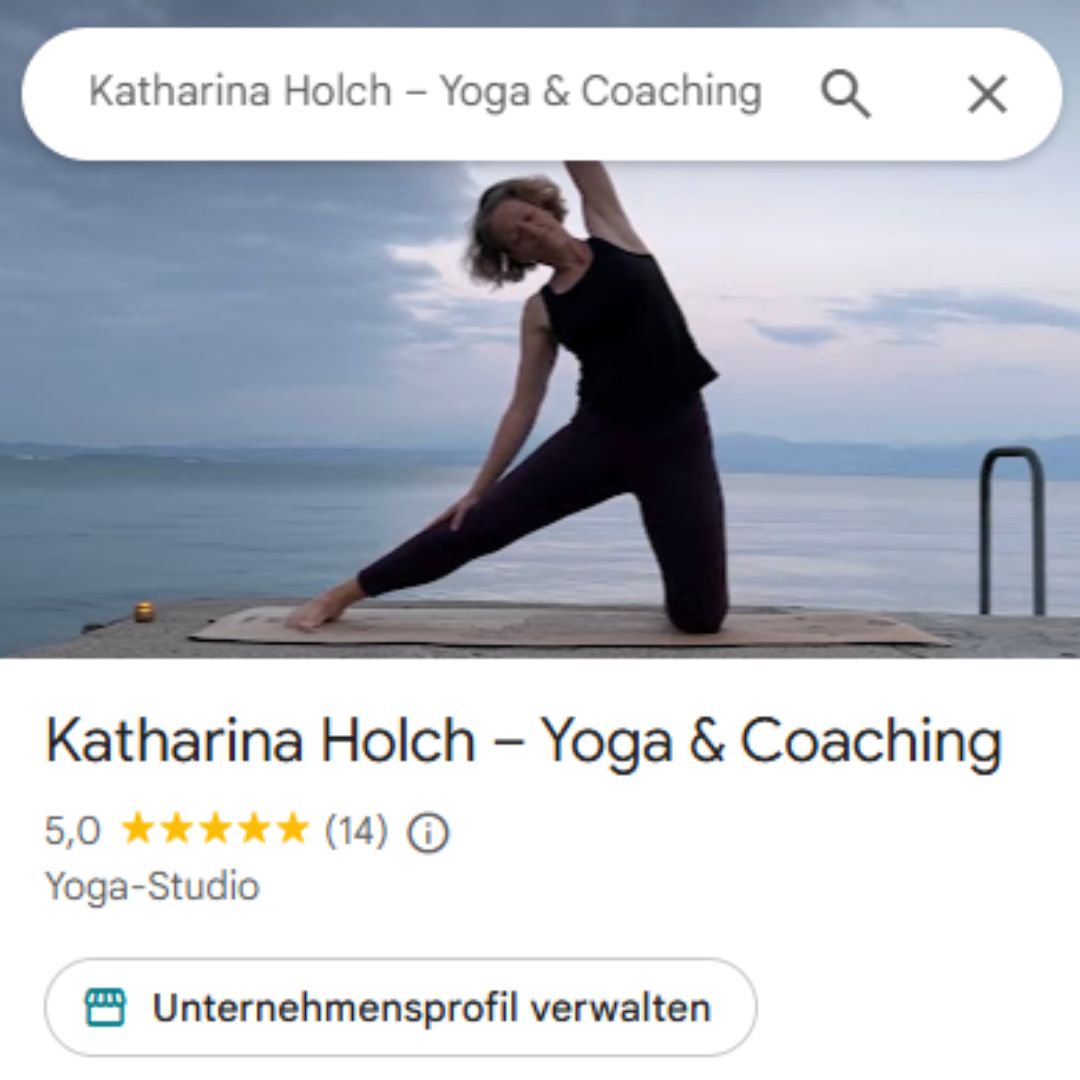 Vor Kurzem bin ich einen weiteren Schritt für mein Business gegangen, damit noch mehr Frauen ganz einfach den Weg zu mir finden können: Ich habe ein Google-Unternehmensprofil erstellt. Ich bin total dankbar, wie viele positive Rezensionen ich in der kurzen Zeit bereits bekommen habe. Die Worte meiner Kund:innen erinnern mich daran, warum ich tue, was ich tue, und helfen anderen Frauen einzuschätzen, ob meine Inhalte und Arbeit das Richtige für sie sind. Wenn auch Du mein Wirken schätzt, würde ich mich riesig über Deine Rezension freuen!